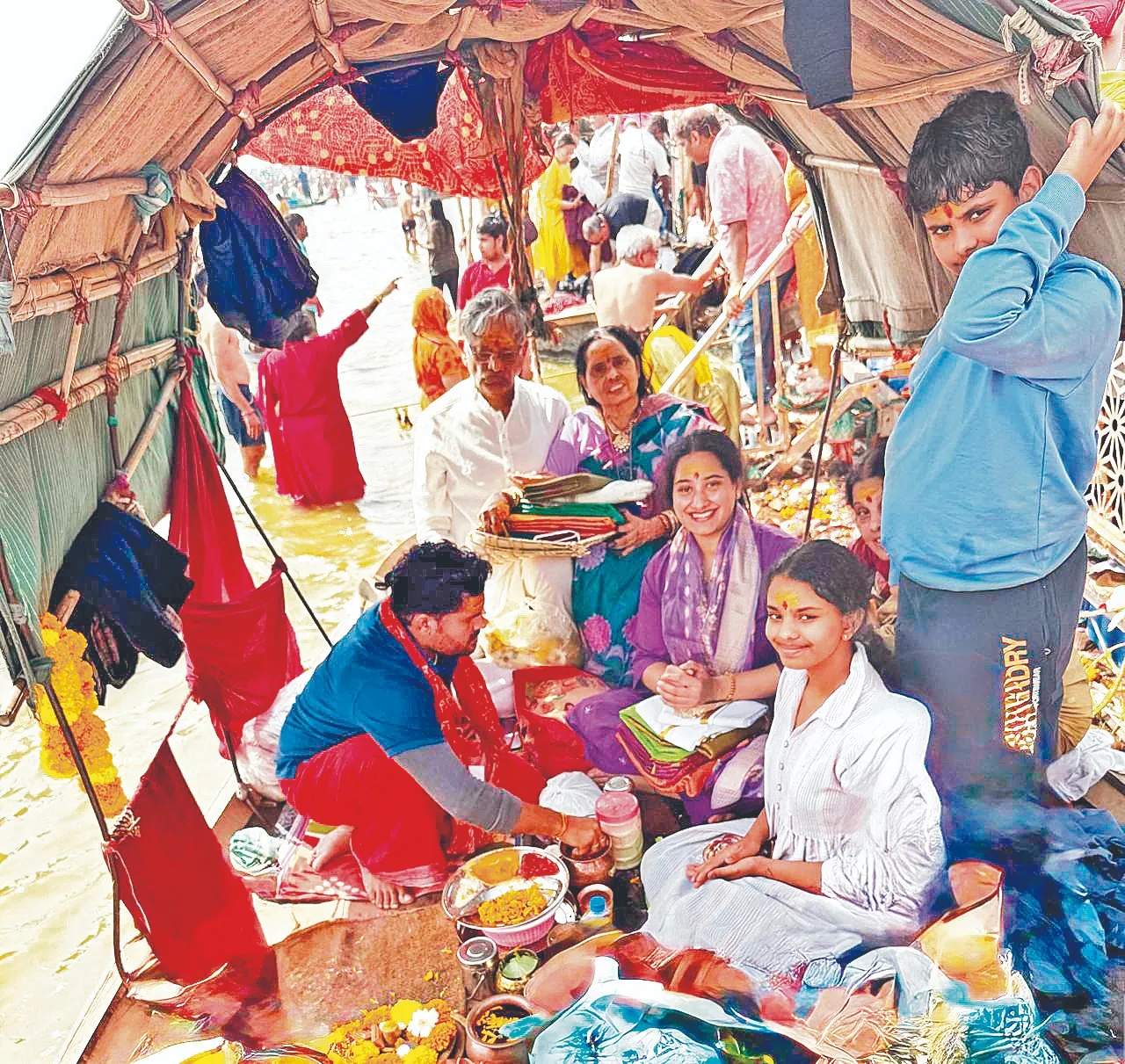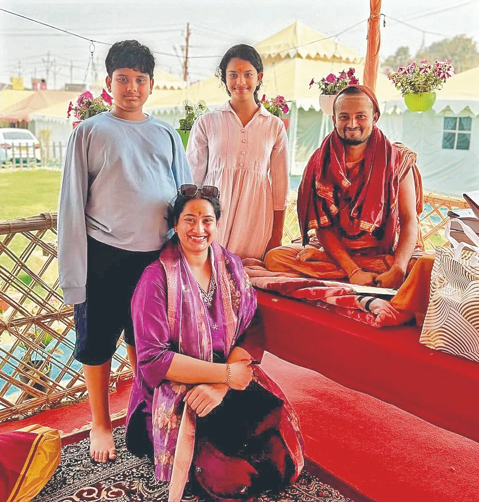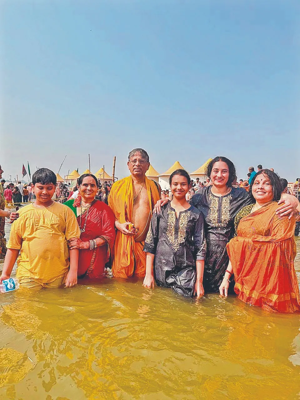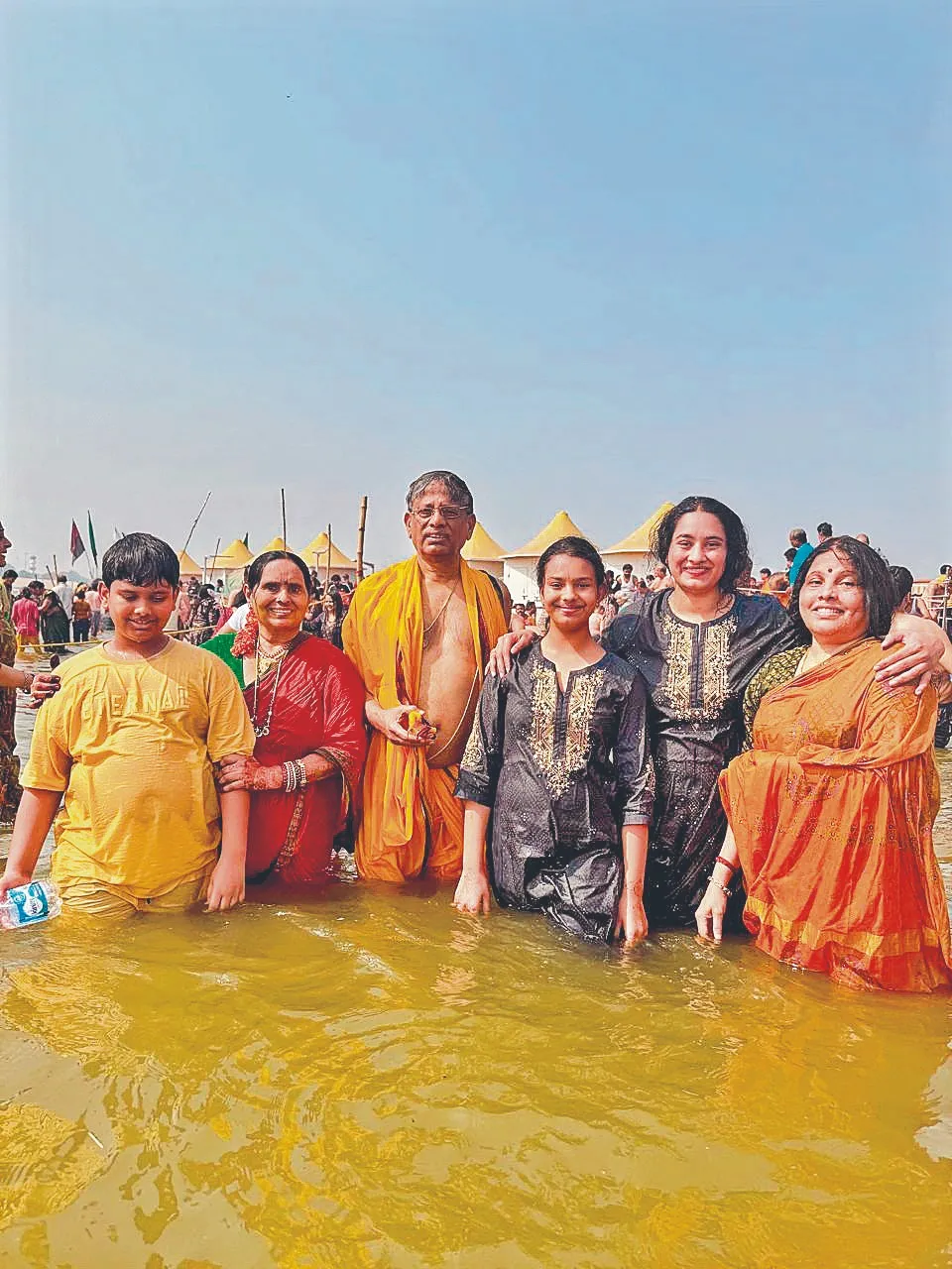 Metro India Chairman Sri CL Rajam, MD Smt Vijaya Rajam, Director Ms Soumya, their grand children Srinandan, Srinidhi, at Maha Kumbh in Prayag Raj,