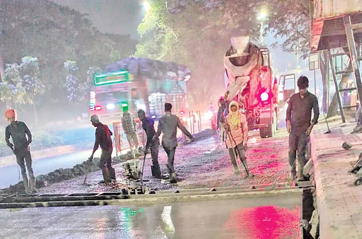 A road safety drive aimed at ensuring smooth travel for city citizens without traffic jams is underway across Greater Hyderabad. As part of road safety measures, pothole filling works, catch pit repairs, road repair works, patch work works, cover replacements, and central median repairs are continuing continuously. GHMC Maintenance Chief Engineer Sahadev Ratnakar is monitoring the drive at the field level as per the instructions of Commissioner R. V. Karnan.