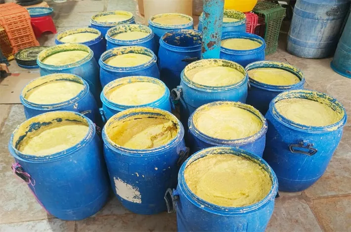 Police said the accused were preparing ginger and garlic paste in highly unhygienic conditions by mixing acetic acid and other substances to increase the shelf life of the product. The paste was stored in large plastic tubs for several days before being packed into containers of different sizes.