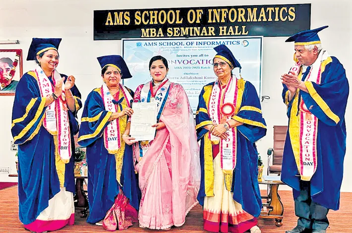 The Andhra Mahila Sabha School of Informatics (AMSSOI) celebrated its 18th Convocation Day on Saturday, awarding Master’s degree certificates and medals to graduating students in a ceremony marked by inspiration, dignity, and academic pride.The event commenced with the lighting of the ceremonial lamp by the dignitaries, symbolizing knowledge and enlightenment.