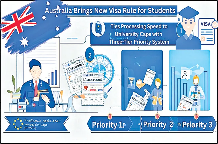 Australia has rolled out a major change to how international student visas are processed, introducing a new tier-based system that could affect the speed at which applications move. The rule, known as Ministerial Direction 115 (MD 115), came into effect today and replaces the earlier MD 111 directive. Under the new system, visa processing speed is now directly linked to how well each university or college manages its approved enrollment cap.