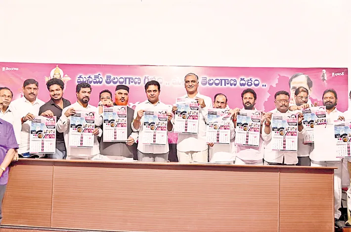 BRS working president K Tarakarama Rao and former minister T Harish Rao unveiled a 2025 calendar themed on minority welfare, prepared by senior leader Shaik Abdullah Sohail, at Telangana Bhavan on Monday.