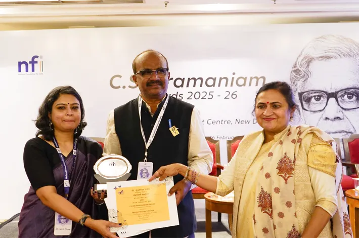 CDS Chairperson Mallepalli Laxmaiah was conferred the C. Subramaniam Award for Community Leadership 2025–26 by the National Foundation for India (NFI) on Monday, February 16, in the presence of distinguished guests including Rashmi Singh, IAS, Chairperson of the Delhi Commission for Child Rights; Satyanandan Mishra, Retired IAS and Chairperson of NFI; Viraj Patnaik, Executive Director, NFI; Sameera, Project Director, NFI; and Paul Divakar of the National Campaign for Dalit Human Rights.