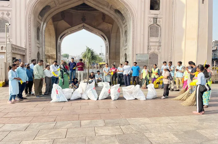 A major clean-up drive was carried out at Charminar on Sunday as part of an ongoing 99-day sustainability initiative, highlighting efforts toward environmental protection and heritage conservation.
