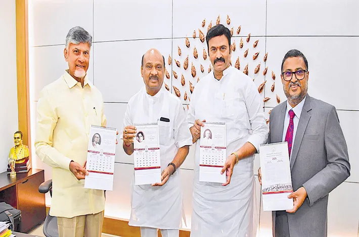 In commemoration of 75 years since the implementation of the Indian Constitution, Chief Minister N. Chandrababu Naidu on Saturday unveiled a specially designed Assembly calendar for 2025 at his residence in Undavalli.