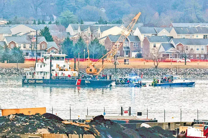 Coast Guard crane arrives to lift debris from crash site on river Potomac, on Friday —AFP