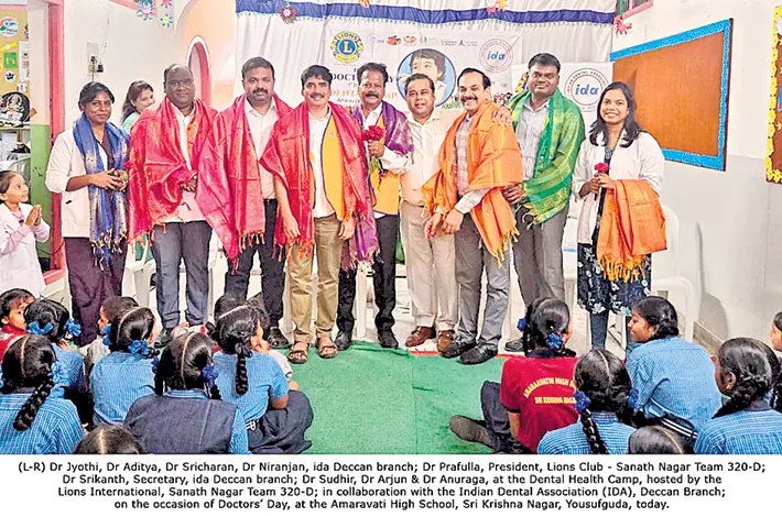 Lions International, Sanath Nagar team, in collaboration with the Indian Dental Association (IDA), Deccan Branch hosted a dental health camp, as part of the Swachh Mukh Abhiyaan, on the occasion of doctors’ day, at the Amaravati High School in Sri Krishna Nagar.