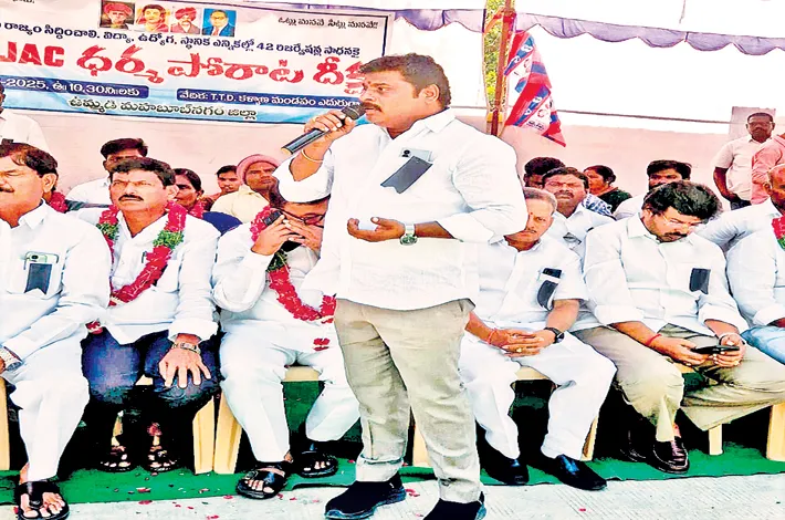 A massive ‘Dharma Porata Deeksha’ was organized in the erstwhile Mahabubnagar district under the leadership of the State BC Joint Action Committee (JAC). Speaking on the occasion, former Municipal Chairman Anand Kumar Goud urged intellectuals and students to unite for the BC movement and carry forward the slogan ‘Maamento Maaku Antha’ to the public.