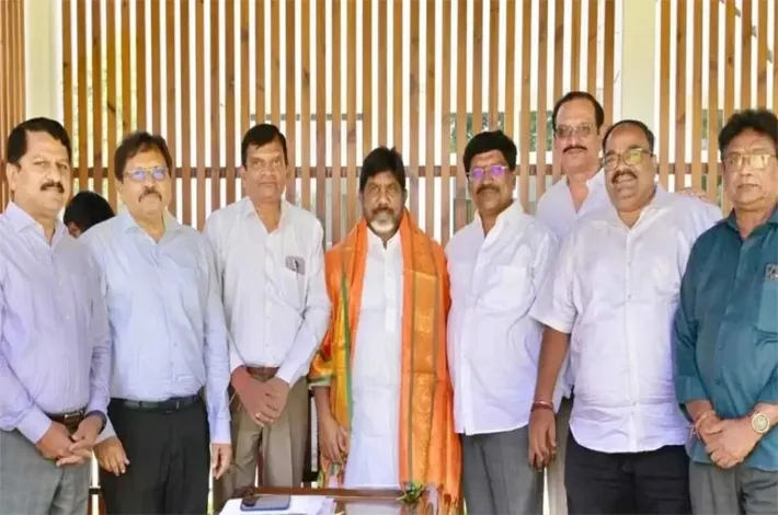 The delegation included Madhu Park Ridge A Block President Dr. K. Srisailam, Secretary Dr. Kareemulla, Advisor Sanjay Shukla, Legal Advisor Pratap Reddy, JAC member B.N. Reddy, Vice President Rambabu, along with other affected residents who participated in the meeting.