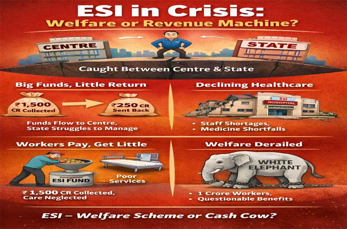 As a result, ESI has turned into a scheme caught between two authorities. Funds flow to the Centre, while the State struggles to maintain hospitals and dispensaries with limited support. Consequently, ESI facilities are being run in a token manner, affecting the quality of medical services available to lakhs of beneficiaries.