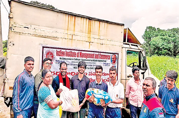 The NSS Units I & II of IIMC College, Lakdikapul, in collaboration with the Hyderabad District Arya Vysya Association, organized a relief effort for flood-affected tribal hamlets in Gundaram village in Kamareddy district on Saturday.