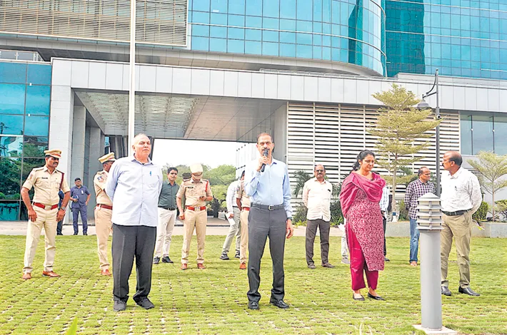 A Fire Mock Drill was conducted at the Telangana Integrated Command and Control Centre (TGiCCC) Hyderabad on Wednesday as part of the emergency preparedness protocol to respond to fire-related incidents. The exercise commenced with the activation of the fire alarm system following a simulated fire incident and announcements over the Public Address System (PAS) across the building.