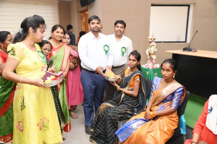 He added that play-based learning is being promoted at Anganwadi Centres. He instructed officials to organize Poshan Panchayats and community awareness programs. He also advised providing guidance to parents to reduce children’s screen time. As part of the program, Shrimantam (traditional baby shower ceremony) was organized for four pregnant women, along with Aksharabhyasam (initiation into education) and graduation certificate distribution for children. Later, the Collector visited the stalls set up on the occasion.