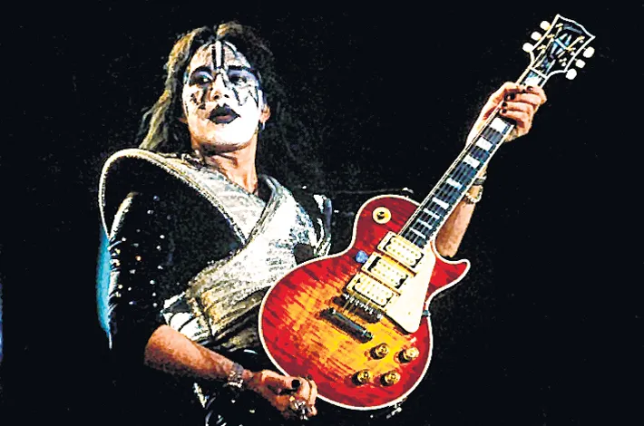 While Kiss, who performed in theatrical makeup, received little respect from music critics and the rock intelligentsia, their impact and influence on a generation of musicians and fans has been immense and enduring. The band’s songs were in many ways a gateway for their concerts and larger-than-life mystique: Their performances were almost overwhelmingly visual and experiential, with explosions, fire-breathing, smoke-spewing guitars and fireworks. Yet the mystique of Kiss was key: the bandmembers’ faces were not revealed for over a decade, by which point Frehley and drummer Peter Criss had left the band. Frehley was known as “Space Ace” and cultivated an otherworldly image.