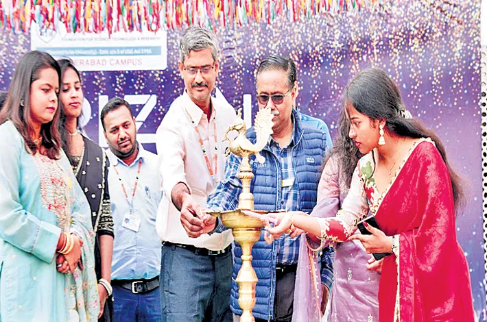 The campus of Vignan's University, located at Deshmukhi village in Yadadri Bhuvanagiri district, reverberated with enthusiasm on Saturday as senior students organized a grand Freshers’ Day celebration to welcome first-year students. The program was inaugurated by University Director Professor Y. V. Daseswara Rao, who formally commenced the celebrations by lighting the ceremonial lamp.