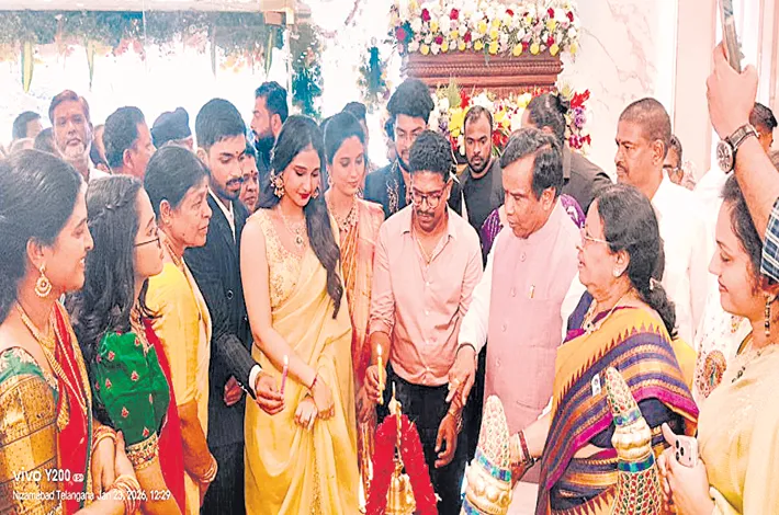 Nizamabad: A new jewellery showroom was opened for the people of Nizamabad city on Friday. Popular film actress Ritika Nayak inaugurated the jewellery store, drawing a large number of women customers for jewellery purchases. Ritika Nayak interacted cheerfully with women shoppers, adding glamour to the event. Nizamabad Urban MLA Dhanpal Suryanarayana also participated in the inauguration ceremony.