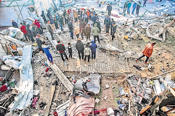 People check the destruction after an Israeli strike at the Al-Farabi school sheltering a number of displaced people, in Gaza City on Wednesday —AFP