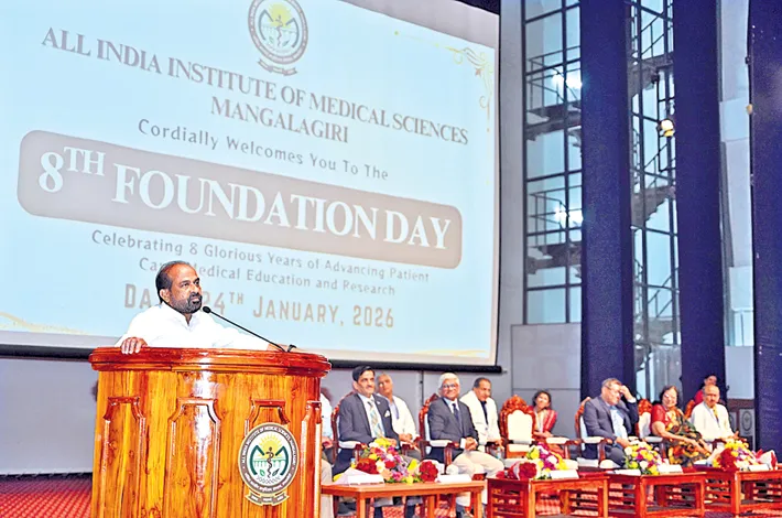Addressing the 8th Foundation Day celebrations held at the AIIMS campus in Mangalagiri, the minister said the coalition government is committed to strengthening the institution’s infrastructure and healthcare services. He announced that efforts are underway to allocate the remaining 10 acres of land, in addition to the existing 190 acres, which would enable the establishment of advanced facilities including trauma care services.