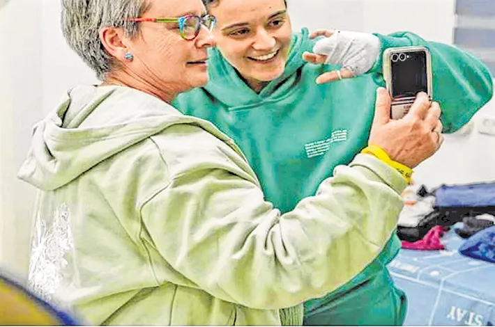 British-Israeli Emily Damari with her mother, Mandy, after being released by Hama —AP