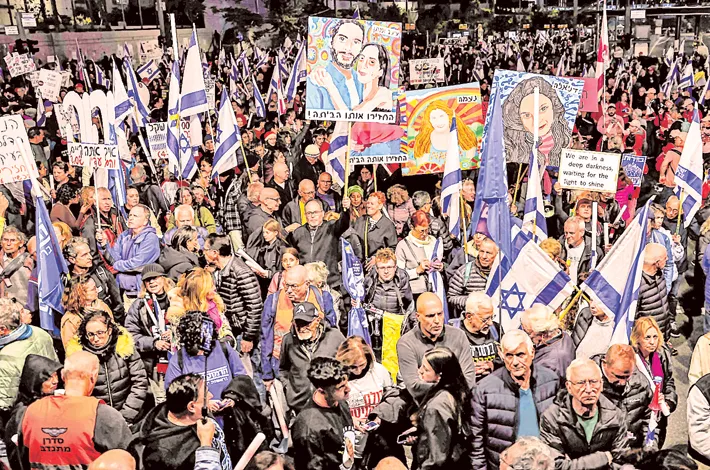 Protesters at a rally calling for action to secure the release of Israeli hostages held captive by Palestinian militants in the Gaza Strip, in Tel Aviv on Saturday —AFP