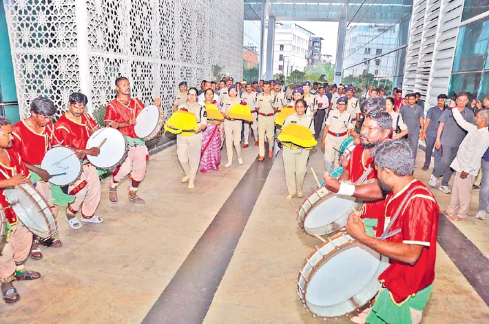 The Hyderabad City Police organized vibrant Bathukamma celebrations at the Integrated Command and Control Center (ICCC) in Banjara Hills. Around 600 women officers and staff from Home Guards to Deputy Commissioners of Police actively took part in the festivities.
