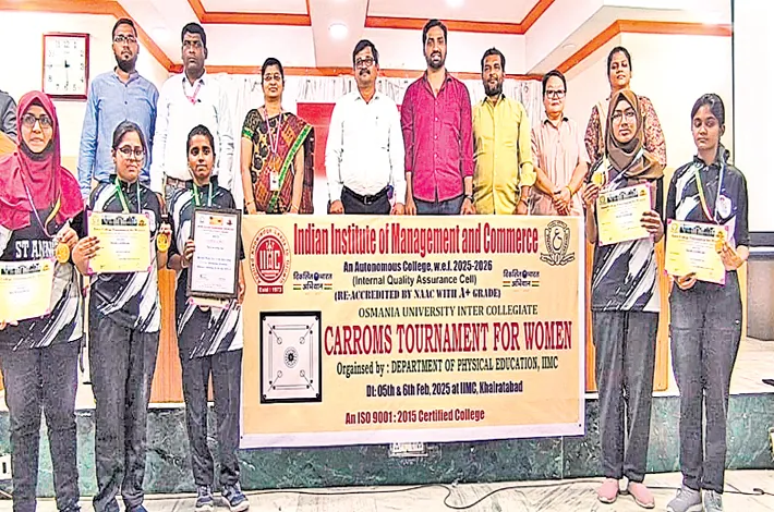 IIMC College, Lakdikapul organized, Carrom Inter College tournament on February 5 to 6, 2025. The chief guest of the tournament was Professor Rajesh Kumar from Osmania University (OU) and guests of honour were K Raghu Veer, Principal of IIMC and Vice Principals Dr D Thirumala Rao (Academic), Dr G Santoshi (admin).