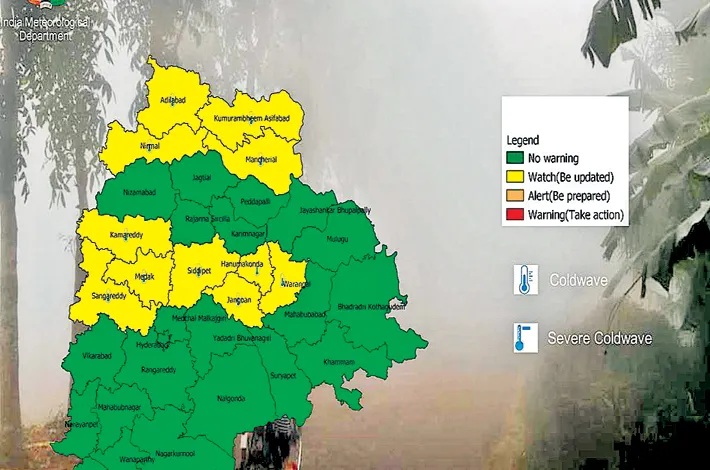 According to IMD’s latest bulletin, cold wave conditions are very likely to prevail at isolated pockets in Adilabad, Kumram Bheem Asifabad, Mancherial, Nirmal, Warangal, Hanamkonda, Jangaon, Siddipet, Sangareddy, Medak and Kamareddy districts.
