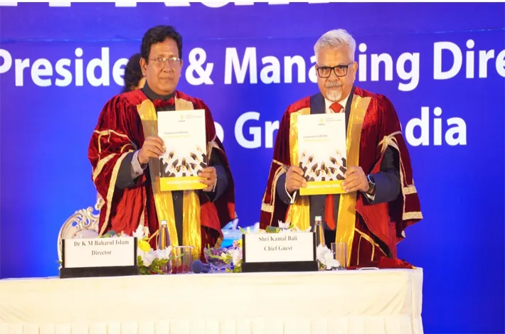 Prof (Dr) K M Baharul Islam and Chief Guest Shri Kamal Bali introduced a new CSR initiative of IMT Hyderabad, ‘Daaitva’, and unveiled the logo. This was followed by the release of the convocation souvenirs for the graduating batch of 2023-25.Addressing the gathering, Prof (Dr) K M Baharul Islam shared key highlights from the academic year 2025, presenting the annual report. He also highlighted all the significant events that took place during the year. He emphasized notable achievements in placements with over 120 prestigious companies, including the Bank of New York, PepsiCo, Deloitte, and Micron Technology, among others, which visited the campus for final placements and provided a range of exciting opportunities for graduating students.