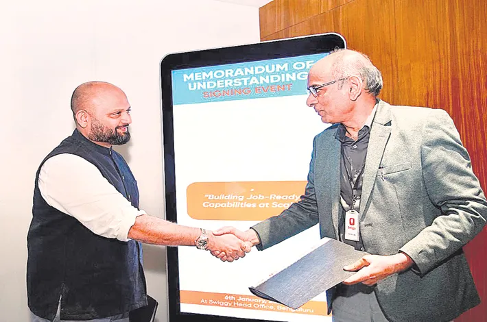 The collaboration, formalised through a Memorandum of Understanding, is expected to benefit more than 5,000 young people across the state over multiple years. YISU, established under the Young India Skills University Telangana Act, 2024 by the Government of Telangana, focuses on industry-aligned education and employability-driven training. The MoU was signed in the presence of YISU Vice Chancellor V.L.V.S.S. Subba Rao and Swiggy Ltd Chief Human Resources Officer Girish Menon.