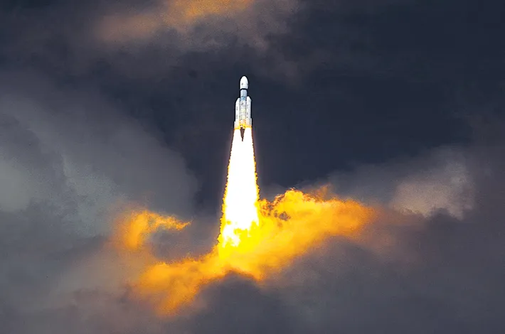 An ISRO heavylift rocket with communication satellite CMS-03, the 'heaviest' to be carried by an Indian launch vehicle and into the Geosynchronous Transfer Orbit (GTO), lifted off from the spaceport here on Sunday. After the 24 hour countdown concluded, the 43.5 metre tall rocket soared into the skies at the prefixed time of 5.26 pm from the second launch pad at this spaceport, about 135 km from Chennai, emanating bright orange coloured fumes on its tail.