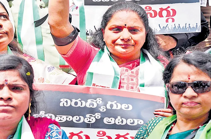 During the event, Kavitha, who led the protest, said the Jagruthi had organised the demonstration to support Group-1 candidates. She claimed, "Rahul Gandhi arrived in Hyderabad from Delhi, sought votes while appealing to the unemployed, and subsequently deceived them. The job calendar remains unreleased, and the Group-1 examination was mishandled. The Jagruthi will persist in pressing the government until the exam is revoked."