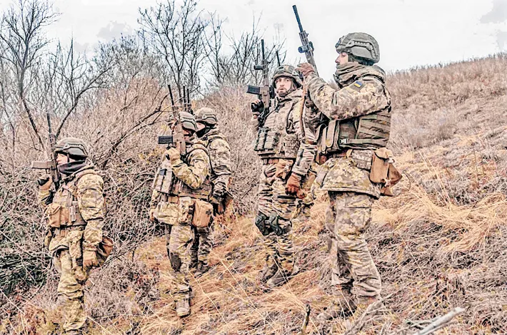 Ukrainian soldiers of the 1st Separate Assault Battalion Da Vinci at a training exercise in the Dnipropetrovsk region -AFP