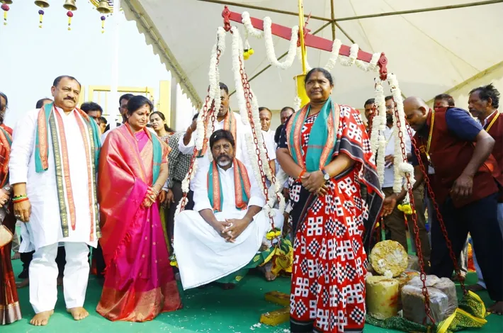 Telangana Ministers Ponguleti Srinivas Reddy, Seethakka, and Adluri Laxman presented a formal request to Union Minister for Tribal Affairs, Jual Oram, and Union Minister for Coal and Mines, G. Kishan Reddy, during their visit to the Sammakka-Saralamma Temple in the Mulugu district on Thursday. The Ministers sought the recognition of the Medaram Jatara as a national festival. Speaking on the occasion, Revenue Minister Ponguleti Srinivas Reddy stated that this is the second Sammakka–Sarakka Jatara being held after the formation of the people’s government in Telangana.