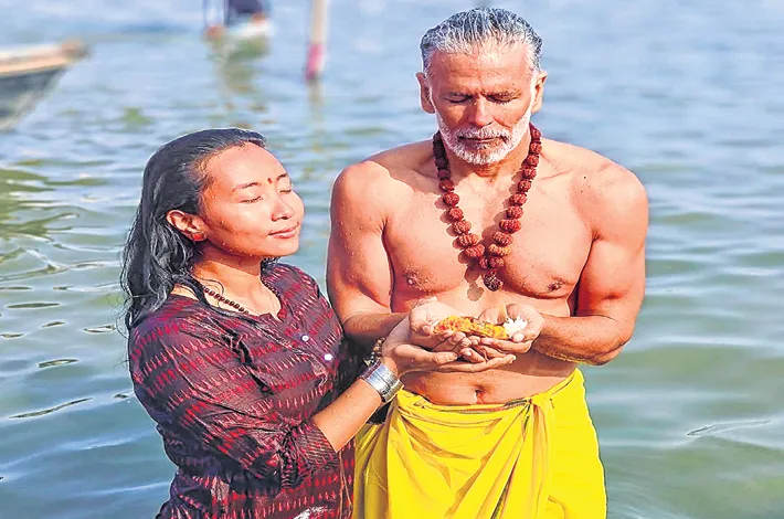 He also expressed his condolences for the victims of the stampede which occurred in the dawn of Wednesday. In the photos, the actor is wearing a yellow dhoti while taking a dip in the Triveni Sangam.