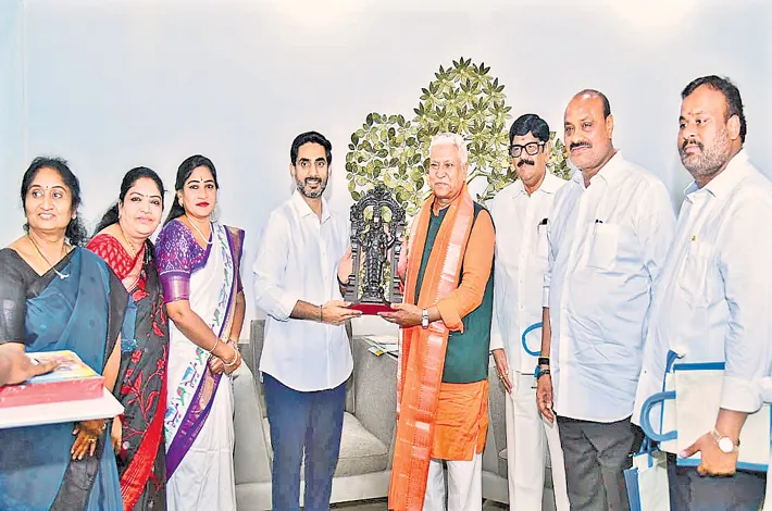 Lokesh presented Ram Lal with the Children’s Constitution book, recently brought out by the Education Department, as a token of respect. He also honoured the RSS leader with a traditional Mangalagiri shawl.The meeting was attended by several ministers and other dignitaries. The interaction is part of a series of engagements Ram Lal is undertaking with leaders from various sectors as the RSS marks its 100-year milestone.