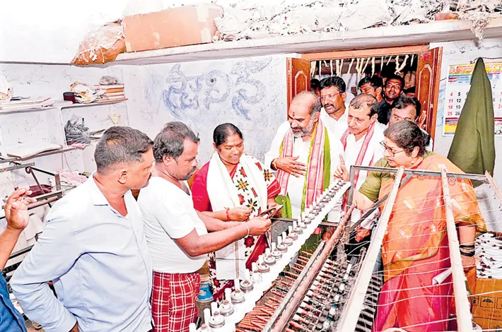 On Monday, the Minister visited the saree production centres operating under the Indira Mahila Shakti scheme in Venkataravnagar, Sircilla. During her visit, she engaged with the weavers to gain insights into their challenges and gather their feedback.