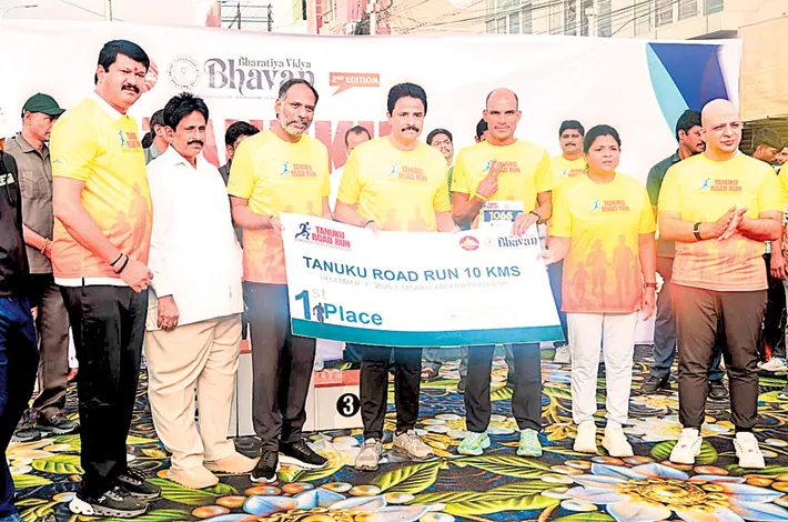 Tanuku MLA Arimilli Radhakrishna said that the road run was organised in 3K, 5K and 10K categories under the aegis of the Tanuku Runners Society. In the 3K run segment, District Collector Chadalavada Nagarani, District Superintendent of Police Adnan Nayem Asmi, MLA Arimilli Radhakrishna, APIIC Chairman Manthena Ramaraju and officials of various departments actively participated in the programme.