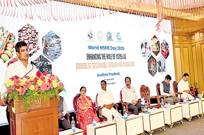 Emphasizing the critical role of Micro, Small, and Medium Enterprises (MSMEs) in economic growth and job creation, Andhra Pradesh Minister for MSME, SERP, and NRI Empowerment and Relations, Kondapalli Srinivas, called upon entrepreneurs to embrace new technologies and seize emerging opportunities. He was addressing the World MSME Day 2025 celebrations held at Taj Hotel in Tirupati on Friday.