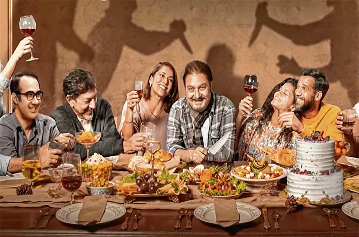 Sharat Katariya plays the perennially nervous character, something which is not very easy to showcase without going overboard. Saurabh Shukla shows us a particular side of the police which a lot of the public associate with them being a predominant part of their personality, easily resorting to violence to get out confessions, a light glimpse of which we also got from his role as a policeman in Slumdog Millionaire (2008). Rajat Kapoor, who initially is only on the sidelines dueing the party, later shows how he is the one who can peek into people’s souls with minimum hints. Koel Purie is the ever-smiling wife who always keeps herself occupied all the time, probably because she has to put up with a very difficult husband. And what a pleasure it was to see Sadia Siddiqui after so long in a role, where she naturally exhibits her character’s innate insecurities and prejudices.