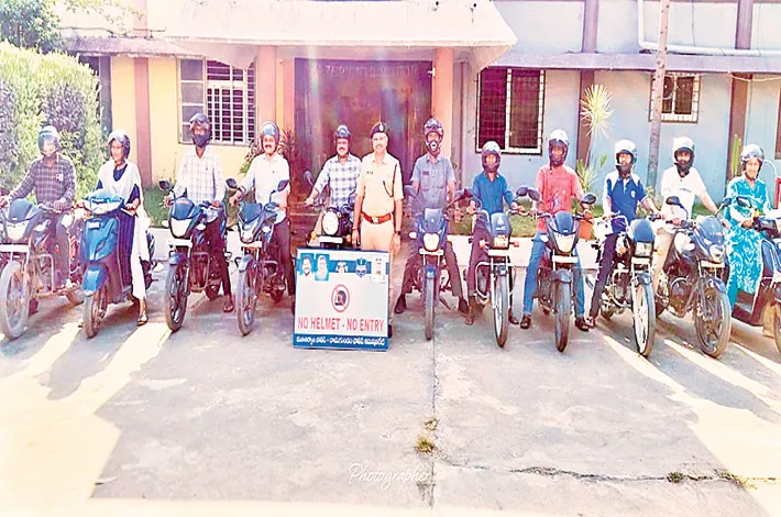 Speaking on the occasion, DCP Eggadi Bhaskar said that wearing a helmet is essential for two-wheeler riders to protect their lives and reduce the risk of fatal injuries in accidents. He made it clear that staff and visitors arriving at the DCP office without helmets would not be allowed entry into the premises.