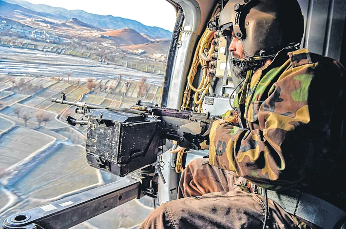 File photo of a Taliban security personnel keeps watch from a helicopter in Afghanistan’s Barmal district of eastern Paktika province —AFP