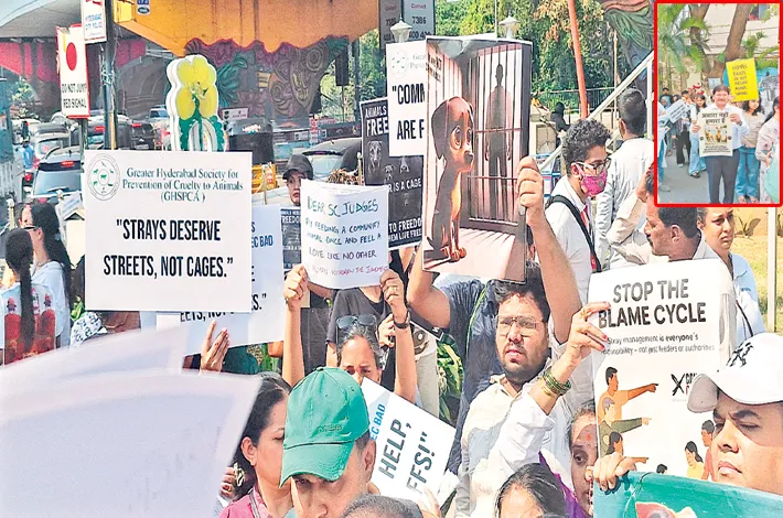 The demonstration came after GHMC intensified dog-lifting operations following the Supreme Court’s November 7 order. Animal-welfare groups, including PFA, said the order is being misapplied, stressing that it covers only dogs found inside institutional premises and not community dogs living in residential areas or public spaces. They warned that such removals violate the Animal Birth Control (ABC) guidelines, which require sterilised and vaccinated dogs to be returned to their original locations.