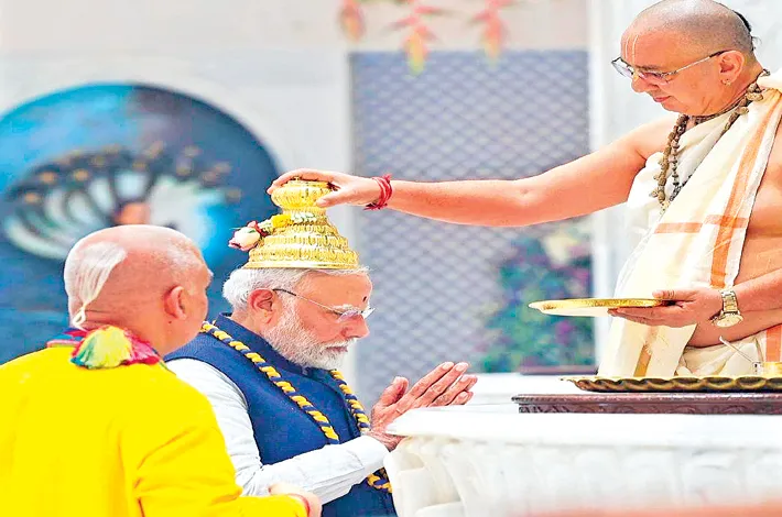 "Sri Sri Radha Madanmohanji Temple is being inaugurated on this great land of knowledge and devotion, with the efforts of ISKCON. I am fortunate that I am getting the blessings of playing a role in this divine inauguration," the PM said. The PM also admired the form of the temple reflecting the tradition of spiritualty and knowledge.
