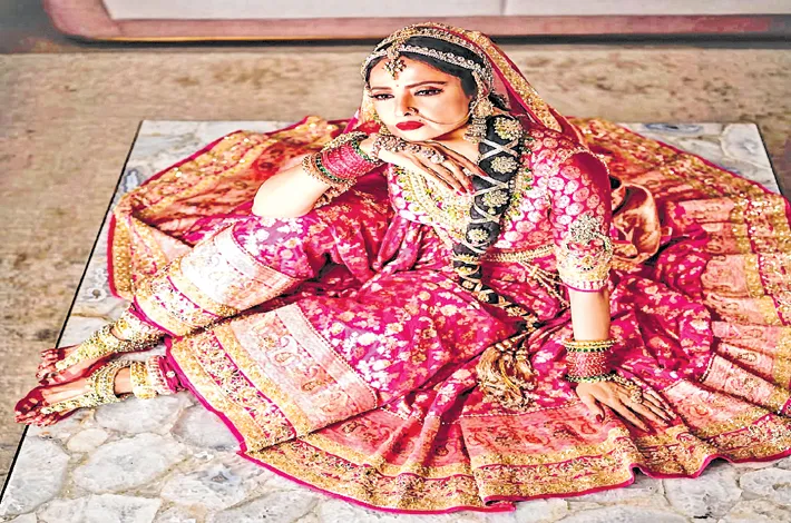 Legendary actress Rekha continues to captivate with her ageless beauty and elegance. Recently, she turned heads in an exquisite pink lehenga by designer Manish Malhotra. The veteran actress effortlessly showcased her timeless charm in a stunning pink lehenga, intricately designed with heavy embellishments that add a touch of grandeur.