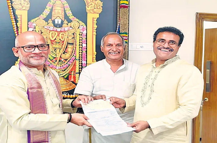 The representatives of both organizations handed over the donation DDs to the TTD Additional Executive Officer, Ch.Venkaiah Chowdary, at the Additional EO Camp Office in Tirumala.
