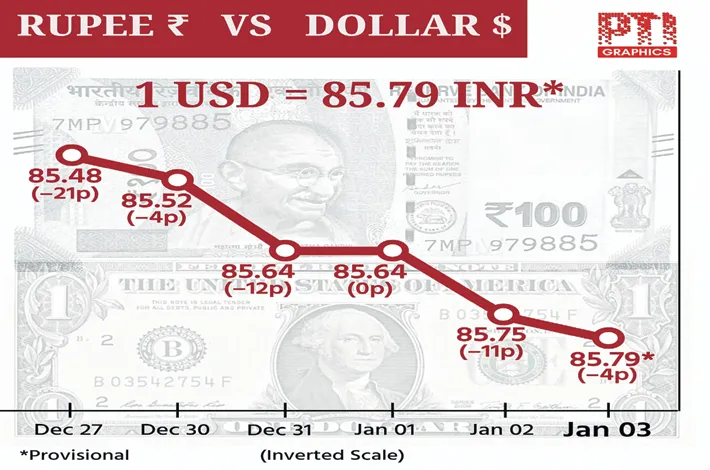 The rupee depreciated 4 paise to close at a record low of 85.79 against the US dollar on Friday, as strong dollar demand from importers and a muted trend in domestic equities weighed on investors' sentiments.