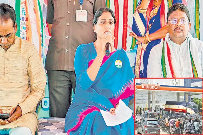 APCC President Y S Sharmila on Tuesday questioned the display of “no stock” boards at 3,000 petrol pumps, asking why it had happened if fuel was sufficient in the state. Questioning the rationing of petrol and diesel sales, the opposition leader asked why a fuel crisis had arisen in the state, unlike elsewhere in the country.