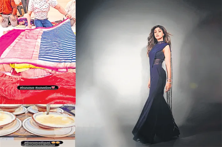 Bollywood star actress Shilpa Shetty on Thursday evening, took to her social media account to share snippets from her Banaras diaries. She gave her fans a peek into her love for traditional weaves, food, spirituality, and also her Banarasi saree shopping, which she calls ‘saree bingeing’. In a post shared by Shilpa, the actress is seen sitting gracefully in a stunning red salwar kameez as a salesman displays a variety of elegant sarees in front of her.