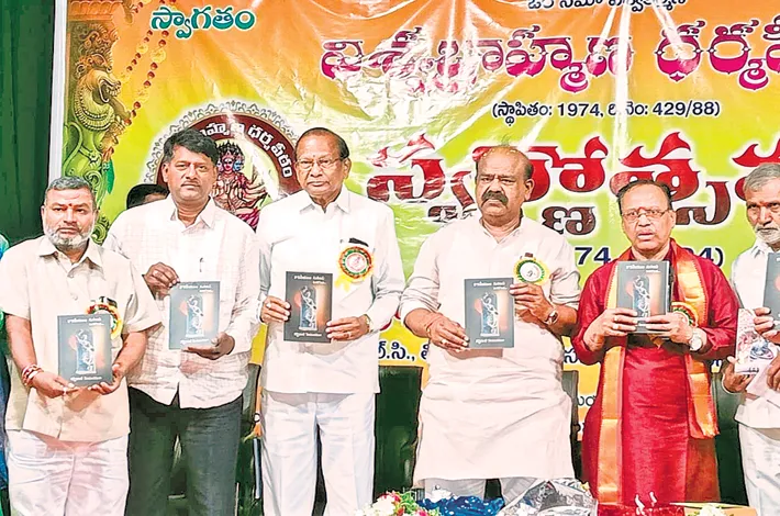 MLC and former Speaker Sirikonda Madhusudana Chary unveiled two noteworthy books during a ceremony at Telugu University Auditorium in Nampally on Sunday. The event marked the grand celebration of the golden jubilee of Vishwabrahmana Dharma Peetham.
