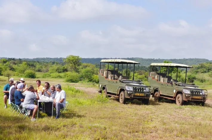 The package includes lunch, evening hi-tea with snacks, dinner in a natural setting, and an exclusive Bush Breakfast served at a scenic forest grassland location. Dining areas are designed to harmonize with the surroundings, offering hygienic, authentic meals in a serene atmosphere.